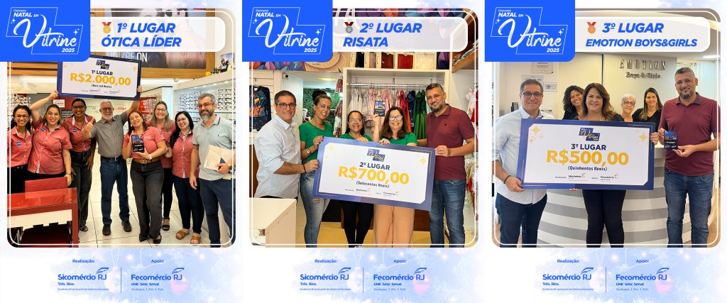 O Concurso Natal em Vitrine chegou ao fim deixando um saldo muito positivo para o comércio de Três Rios. A ação mobilizou lojistas, chamou a atenção da população e ajudou a espalhar o clima de Natal pelas ruas da cidade.